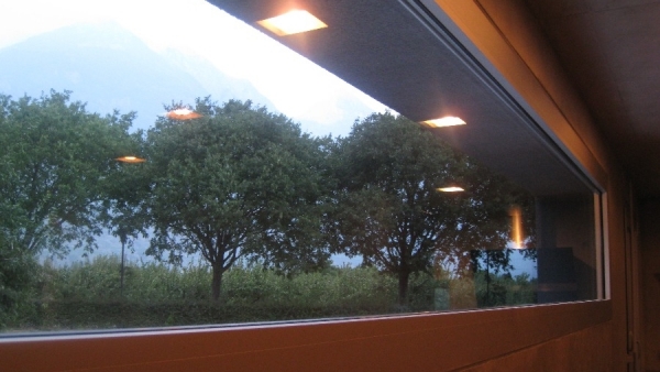 Le programme souhaité pour cette habitation familiale s'implante sur un terrain plat. La forme en "L" composée de 2 volumes s'est naturellement imposée de façon à se protéger de la route, du vent et définir un espace de détente bénéficiant d'une orientation Sud-Ouest. Ainsi on y trouve 2 volumes distincts, qui par leur décalage, offre le couvert d'entrée et le couvert à véhicules.